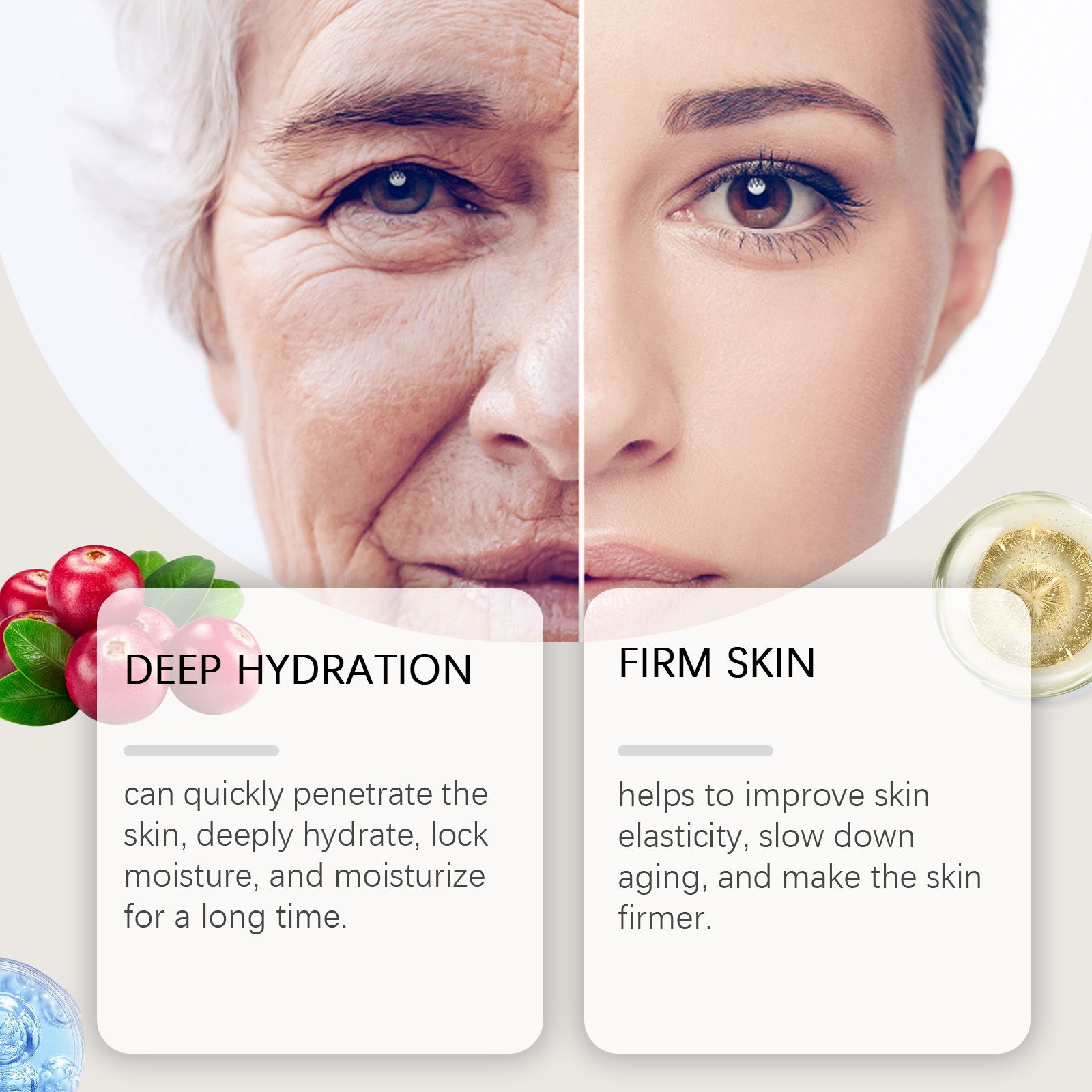 Our Anti-wrinkle firming and hydrating serum contains hyaluronic acid, arginine and arbutin. It penetrates the skin quickly, deeply hydrates, locks in moisture, and moisturizes for a long time. The way to use it is simple: clean the skin. Apply appropriate amount of the product evenly on the face. Massage gently to promote absorption. It can also help improve skin elasticity, slow down aging, and make skin firmer.