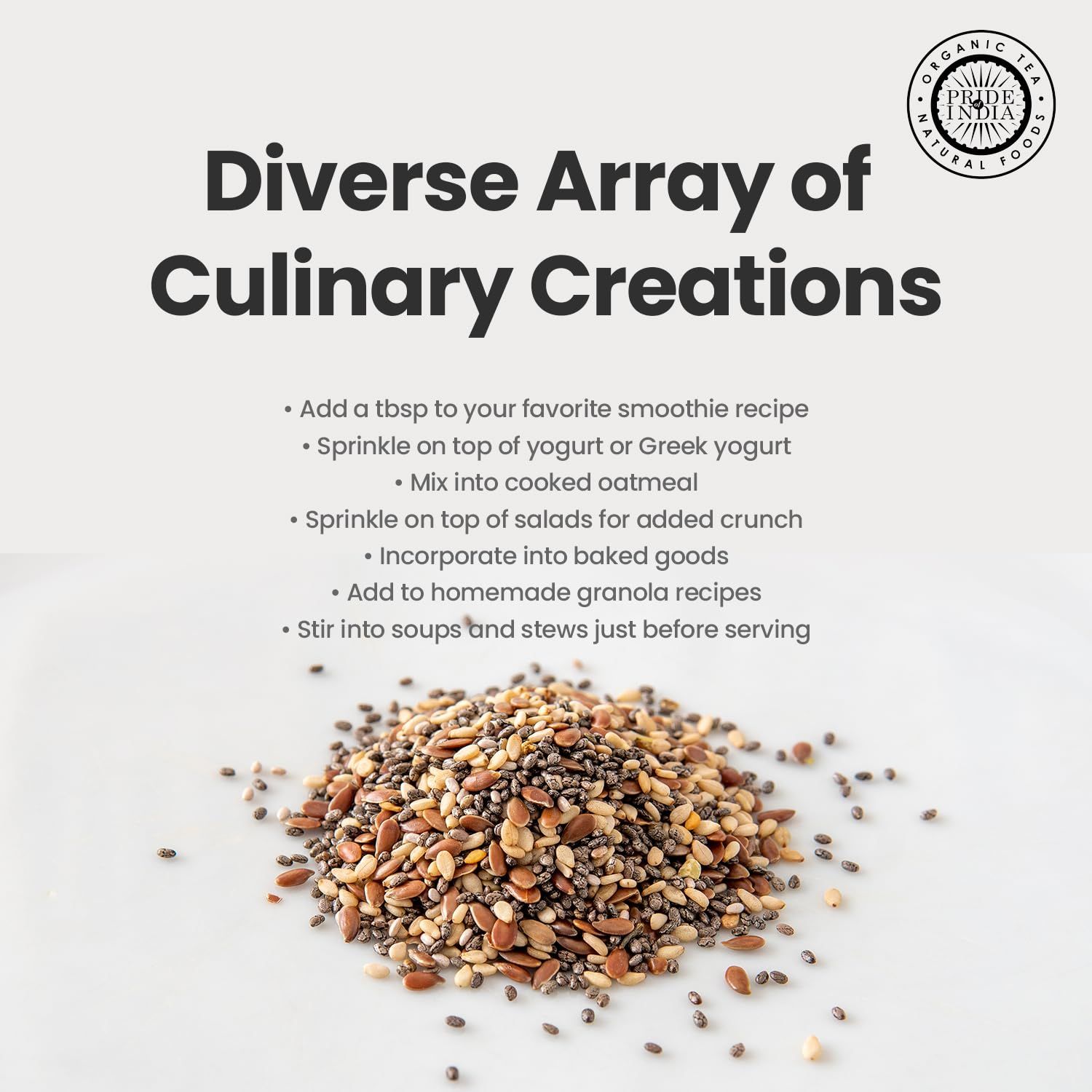 1.Pride Of India's Triple Omega Superseed Mix are 100% Natural Chia, Flax & Sesame Seeds Supermix - Omega-3 & Calcium Rich Superseeds